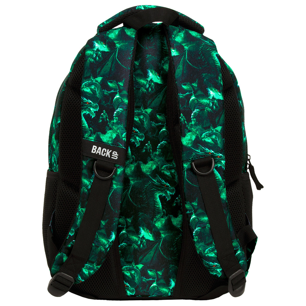 Drapieżne i potężne smoki zdobią czarny materiał plecaka, a ich błyszczące, czerwone oczy śledzą każdy ruch wroga. Ich szmaragdowy kolor dodaje im majestatycznego wyglądu.