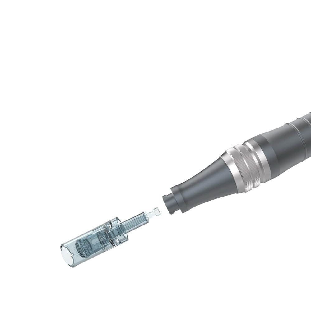Igły Dr Pen M8, zaprojektowane tak by iniekcja była bezbolesna. Moduł jest bagnetowy, co zapewnia jeszcze większe bezpieczeństwo i komfort pracy. Posiada 3 stopniową blokadę na kartridżu. Kartridż posiada grubość 0,18mm; co sprawia, że jest bardzo precyzyjny.