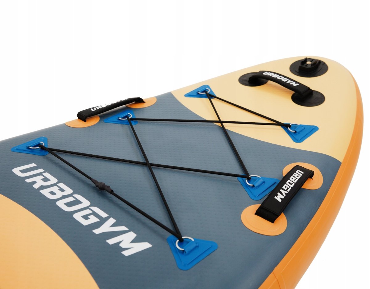 Deska SUP Urbogym HYPERCANE 350 - jest wysokiej klasy sprzętem sportowym, wyposażonym w niezbędne akcesoria umożliwiające rozpoczęcie przygody ze sportami wodnymi. Dodatkowo deska HYPERCANE wyróżnia się na rynku zaczepem pod kamerę sportową GoPro. Pozwoli to na utrwalenie wodnych wypraw na desce czy zrobienie zdjęć z miejsc, do których nie byłoby możliwości samodzielnie dopłynąć.