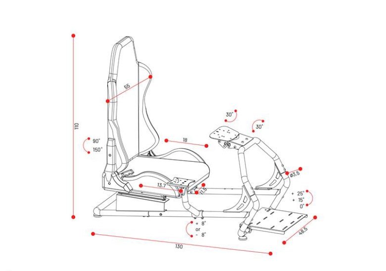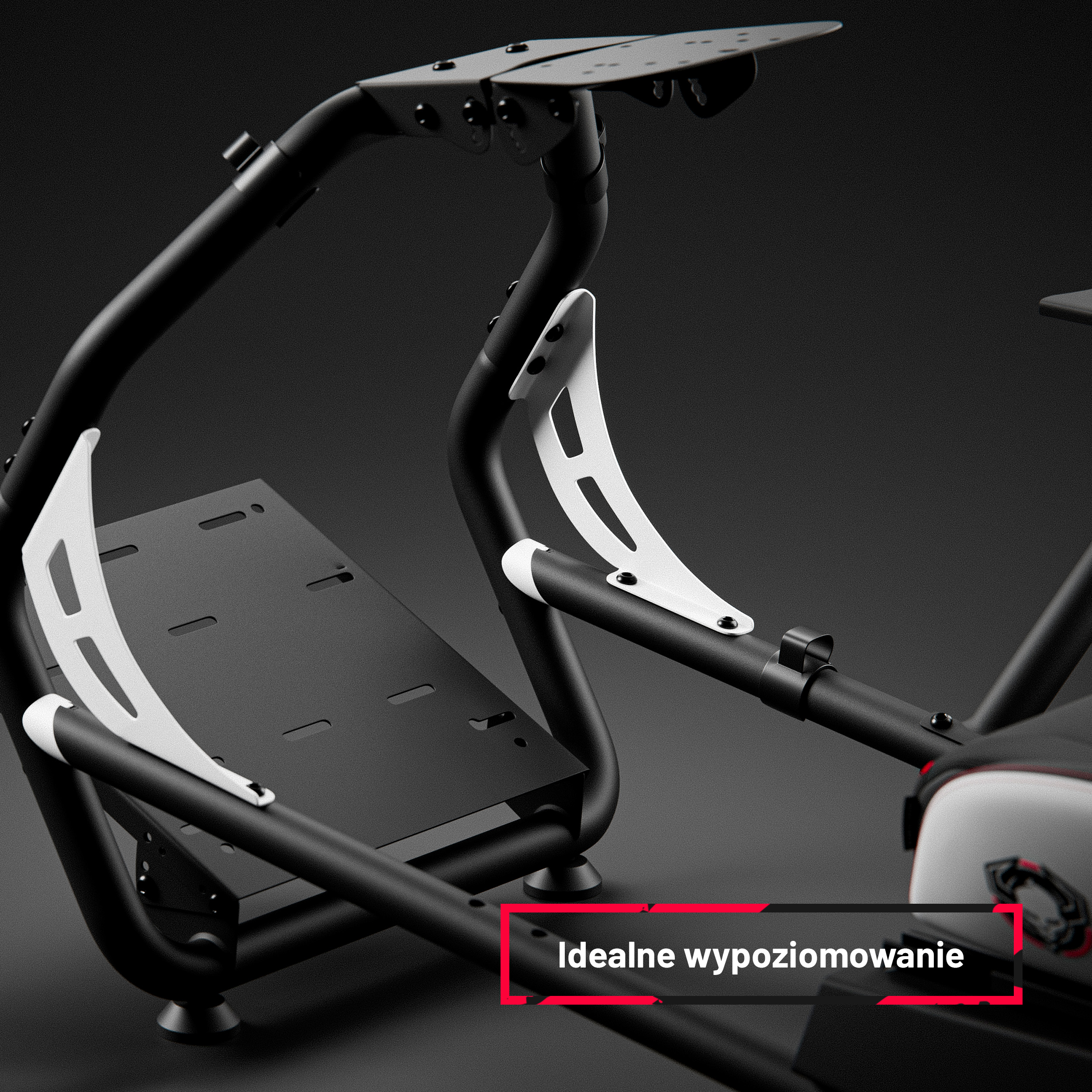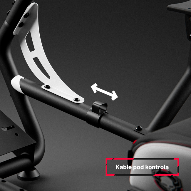 Stelaż do simracingu osadzony jest na wytrzymałych, regulowanych stopkach. Możesz zmienić ich wysokość i kąt nachylenia, uzyskując maksymalną stabilność na każdej, nawet nierównej powierzchni. Delikatne zakończenie sprawia, że są bezpieczne dla podłogi, chroniąc ją przed zarysowaniami nawet podczas najbardziej intensywnych wyścigów.