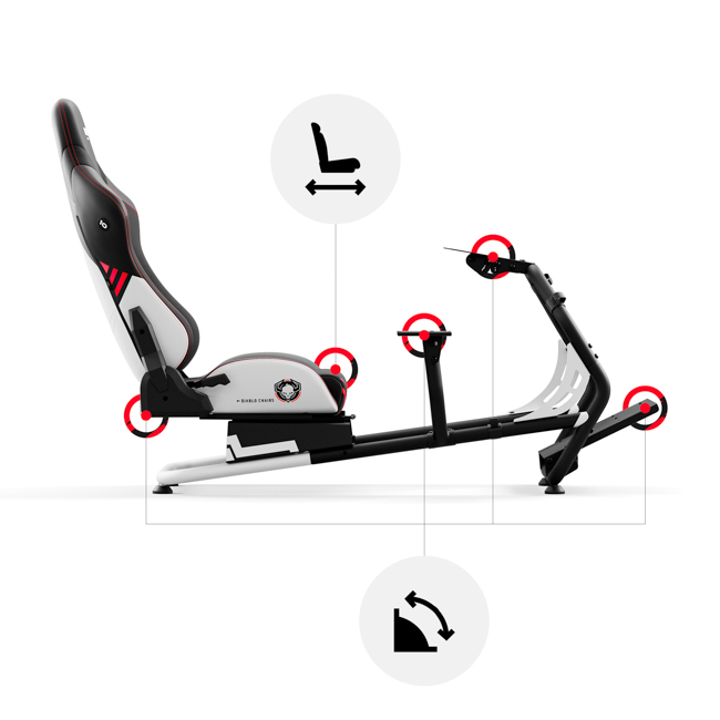 Wykręcanie rekordów okrążeń nie jest możliwe bez doskonałego wyczucia swojej maszyny. Bogaty zestaw regulacji stanowiska do kierownicy Diablo X-Drive sprawia, że idealnie zestroisz się ze swoim fotelem.
