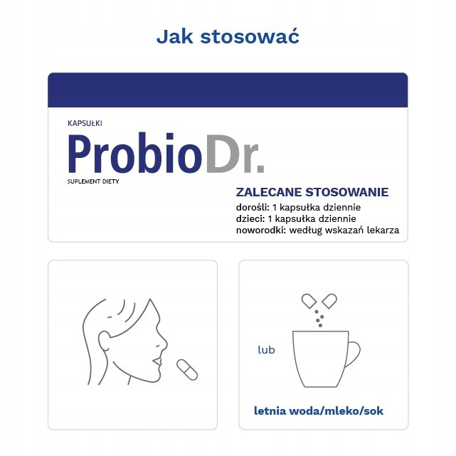 ProbioDr. zawiera kombinację wyselekcjonowanych szczepów bakterii- 2 miliardów kultur bakterii probiotycznych: Lactobacillus rhamnosus GG (ATCC 53103) i Lactobacillus helveticus.