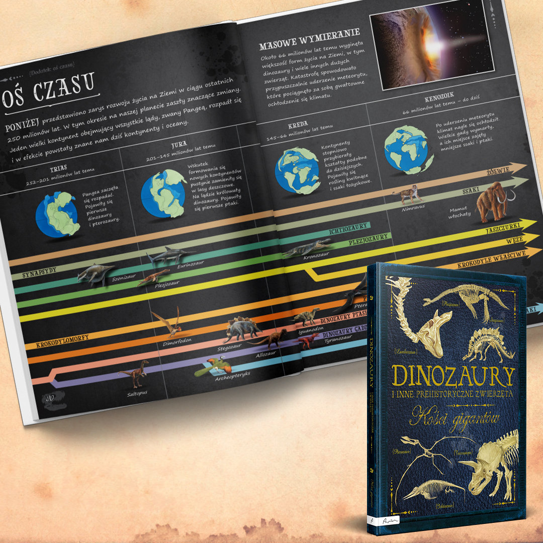 Zjawiskowo piękna książka, która przenosi czytelników miliony lat wstecz - do prehistorycznej krainy, gdzie spacerowały dinozaury, latały pterozaury, pływały plezjozaury i ichtiozaury. Autor bada szkielety pradawnych stworzeń i, jak paleontolodzy, rekonstruuje ich wygląd: od potężnego giganotozaura po roślinożernego diplodoka.