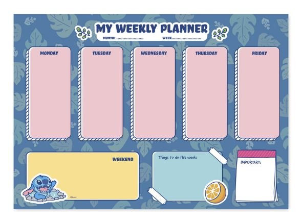 Tygodniowy planer Disney StitchPlaner A4 z ulubionym motywem w któym zaplanujesz cały tydzień. Planer zadrukowany jest kolorowymi grafikami związanymi z głównym motywem.Ma dużo miejsca na notatki na ...
