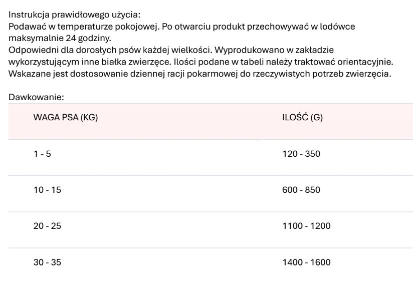 Skład: indyk (mięso) 62%, szynka wieprzowa 30%, marchew 4%, substancje mineralne, ksyloza.