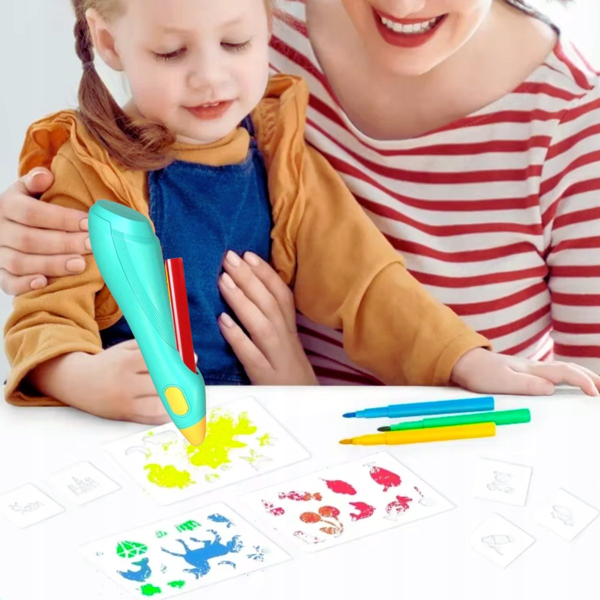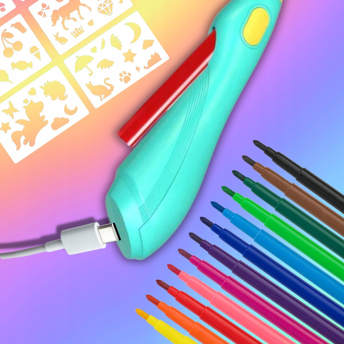 Długopis Airbrush oraz zestaw szablonów zostały zaprojektowane z myślą o dzieciach w każdym wieku, zapewniając doskonałą zabawę zarówno młodszym, jak i starszym.