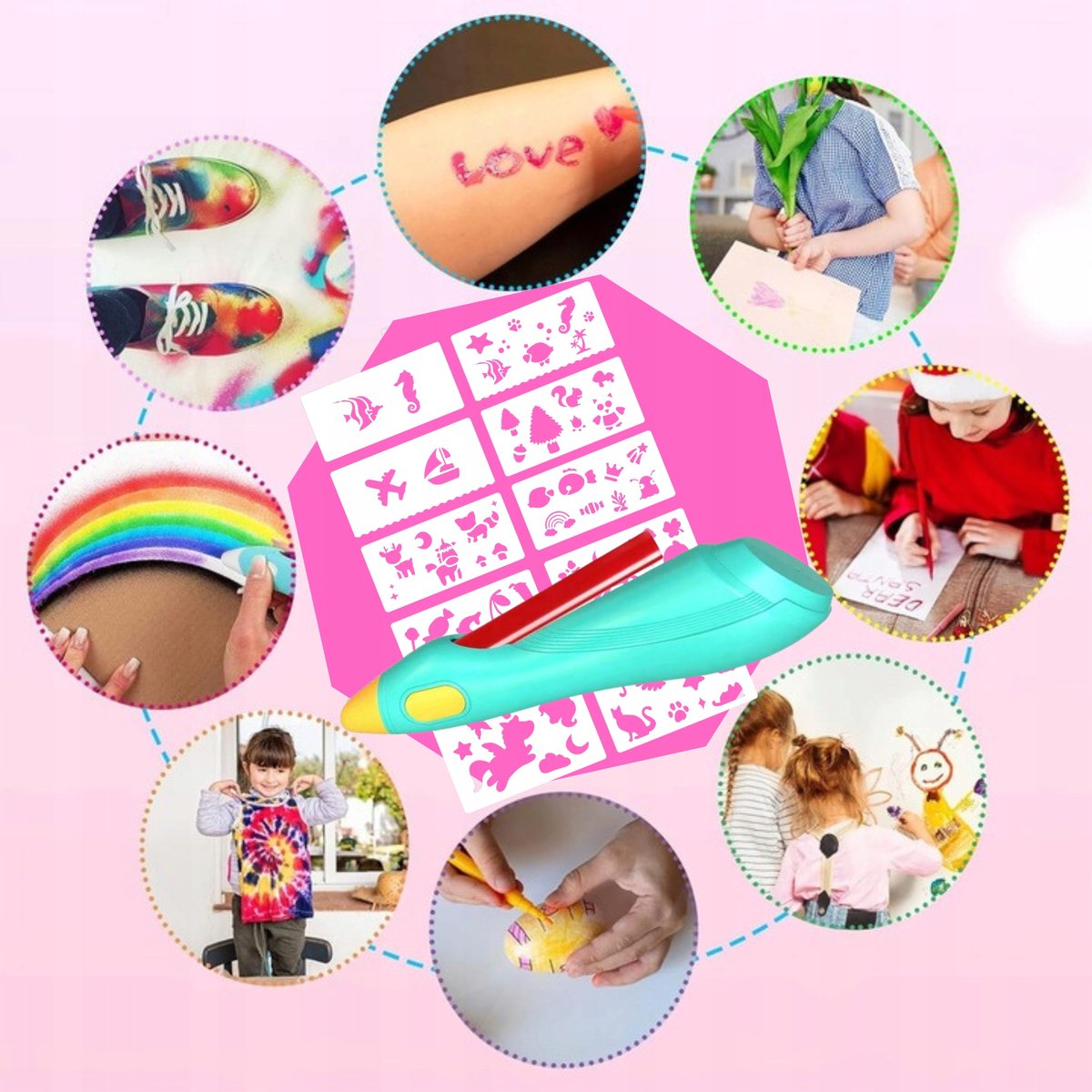 Właśnie zrecenzowałem DŁUGOPIS AIRBRUSH FUN DLA DZIECI MAGICZNY DŁUGOPIS DO MALOWANIA + WKŁADY SZABLONY USB