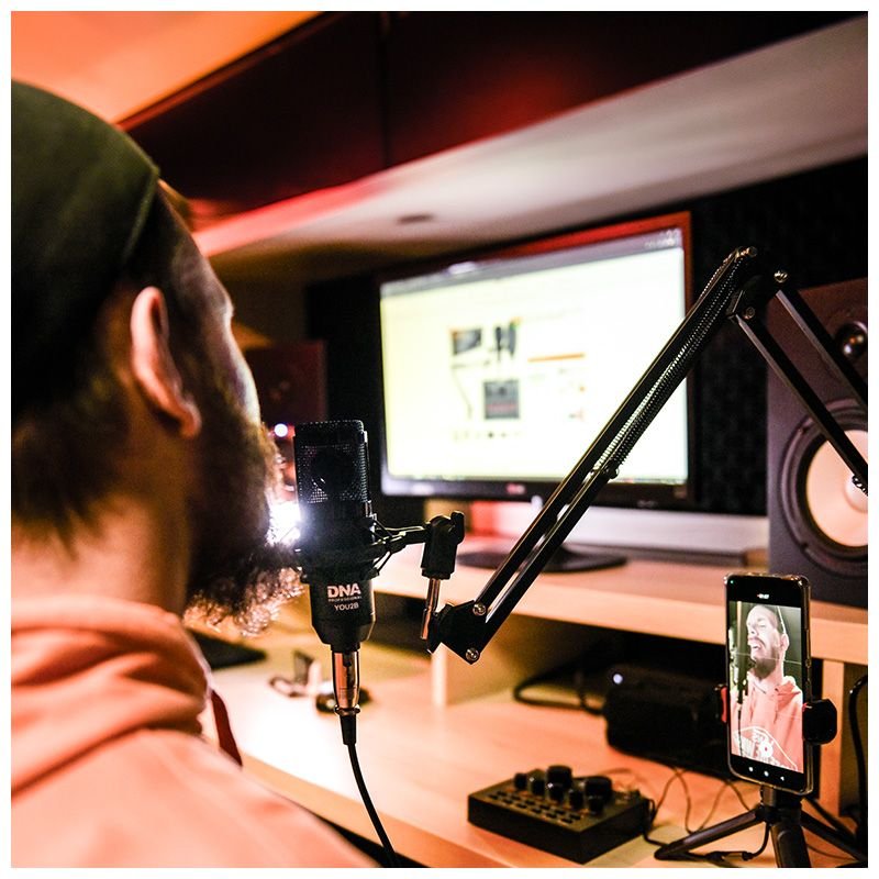 Podczas streamingu albo nagrywania dźwięku w studiu i homerecordingu ważna jest zarówno jakość sygnału audio oraz wygoda i tempo pracy. Mikrofon DNA YOU2B wyposażony został w czuły przetwornik pojemnościowy, który doskonale reprodukuje dźwięk. Kardioidalna charakterystyka kierunkowości i szerokie pasmo przenoszenia sprawiają, że źródło akustyczne zostaje odwzorowane szczegółowo, a dzięki filtrowi pop i nakładce przeciwwietrznej jest pozbawione niechcianych przydźwięków i szumów z otoczenia. Dołączony do zestawu kosz antywstrząsowy redukuje wszystkie drgania fizyczne mikrofonu, a wygodne ramię wysięgnikowe mocowane do blatu pozwala na ustawienie mikrofonu dokładnie w takiej pozycji, jakiej chcemy.