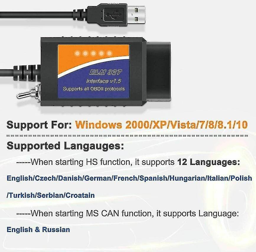 ELM327 USB w pełni obsługuje protokół diagnostyczny MS-CAN specyficzny dla Forda