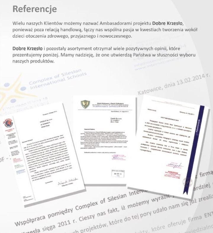 Unikalna forma produkcji pozwoliła nam stworzyć wyjątkowe i jakościowe krzesła o bardzo wytrzymałej konstrukcji. Przeprowadziliśmy liczne badania wytrzymałościowe wszystkich kolekcji krzeseł, które potwierdzają jakość wykonania. Oferujemy w 100% wysokojakościowe krzesła dla dzieci i dorosłych. Produkcja odbywa się zgodnie z normą europejską. Siedziska Dobrych Krzeseł zostały zaprojektowane w oparciu o normę PN-EN 1729 oraz przebadane pod kątem wytrzymałości zgodnie z normą PN-EN 1335.