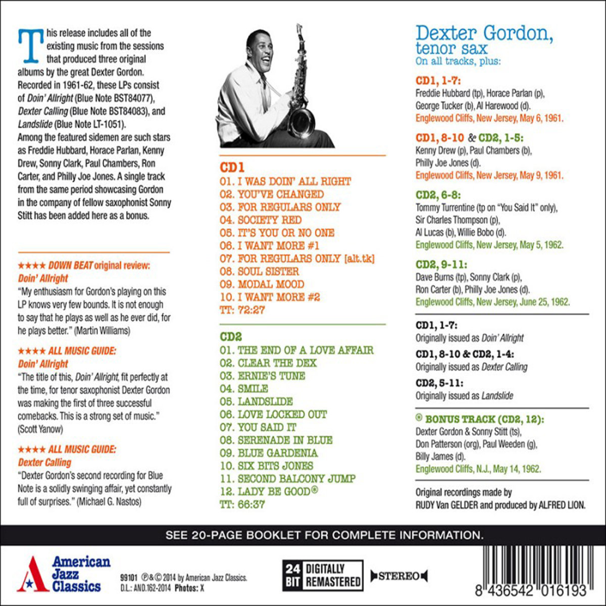 To zremasterowane (24 BIT Digitally Remastered) wydanie zawiera całą istniejącą muzykę z sesji, na których powstały trzy oryginalne albumy wielkiego Dextera Gordona. Nagrane w latach 1961-62. Album składa się z „Doin’ Allright”, „Dexter Calling” oraz „Landslide”.