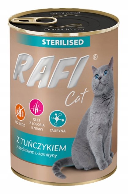 PUSZKA DLA KOTA DOLINA NOTECI - RAFI CAT BEZ ZBÓŻ - MIX SMAKÓW 24 x 400g Mokra karma pełnoporcjowa dla dorosłych kotów wszystkich ras - MIX SMAKÓW 24x400gMokra karma dla kotów ...