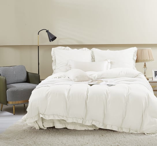 Centralnym miejscem każdej sypialni jest, rzecz jasna, łóżko. W celu zwiększenia estetyki pomieszczenia można wybrać narzuty, którymi zakryje się leżącą na nim pościel. Do tego warto dobrać pod kolor prześcieradła czy pledy i koce, którymi można okryć się w długie, zimowe wieczory.