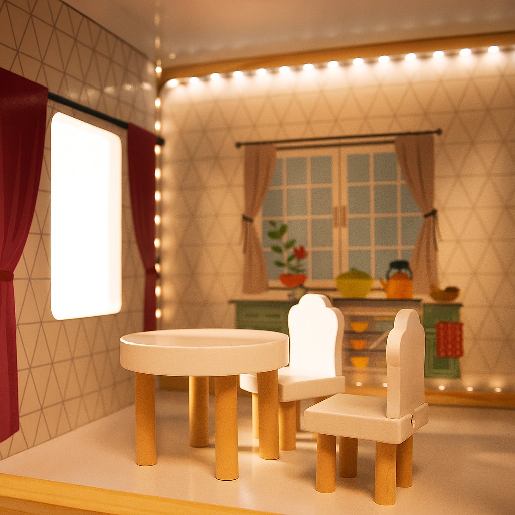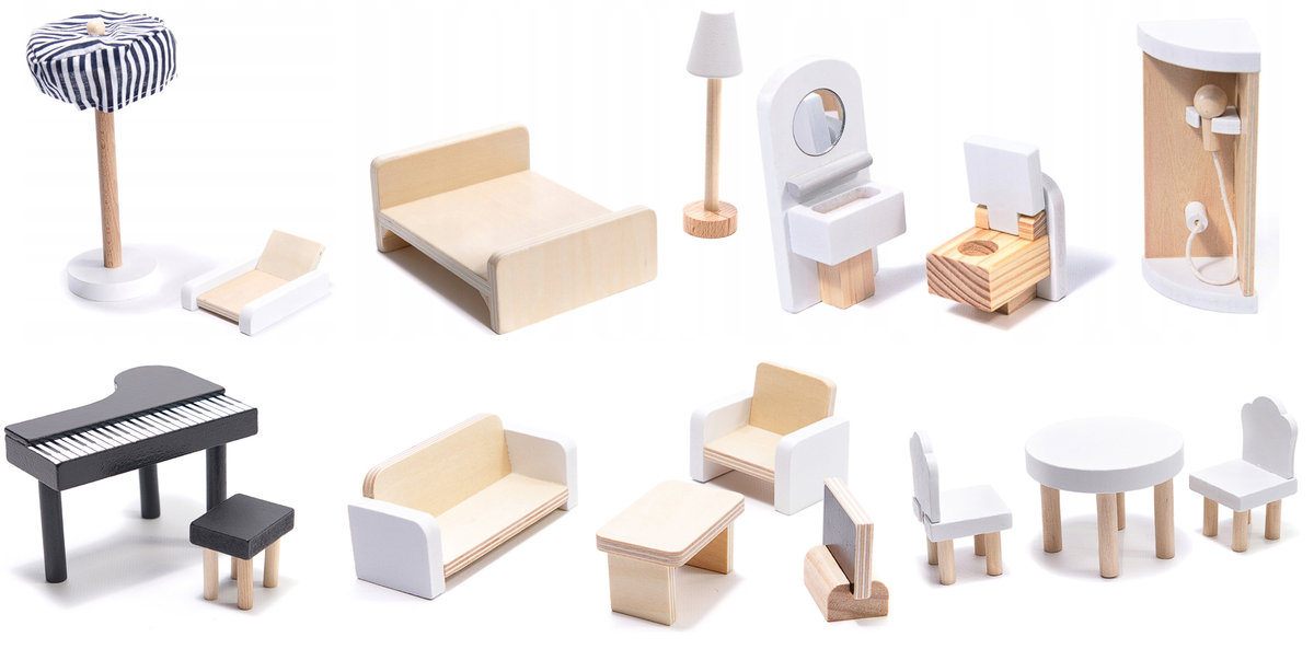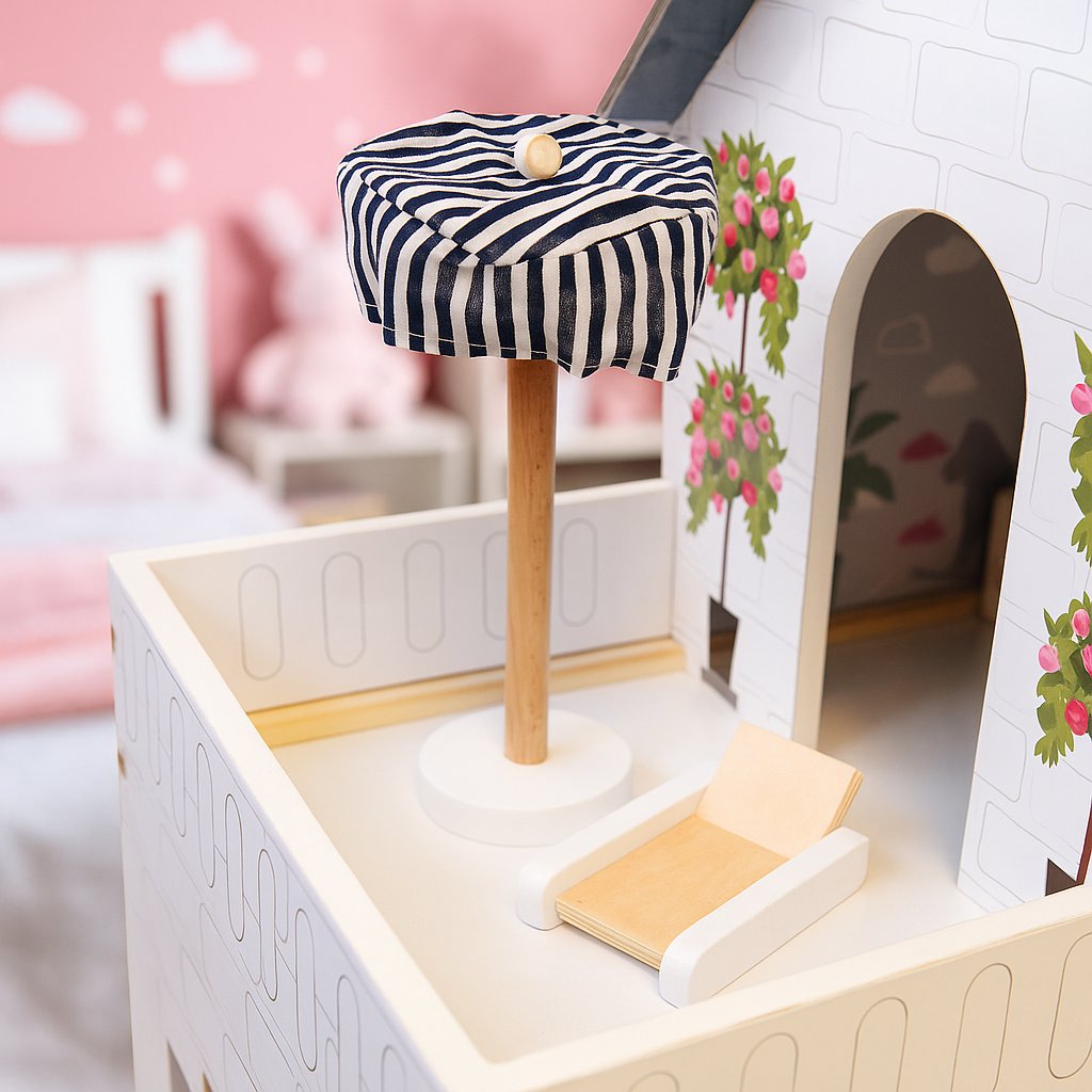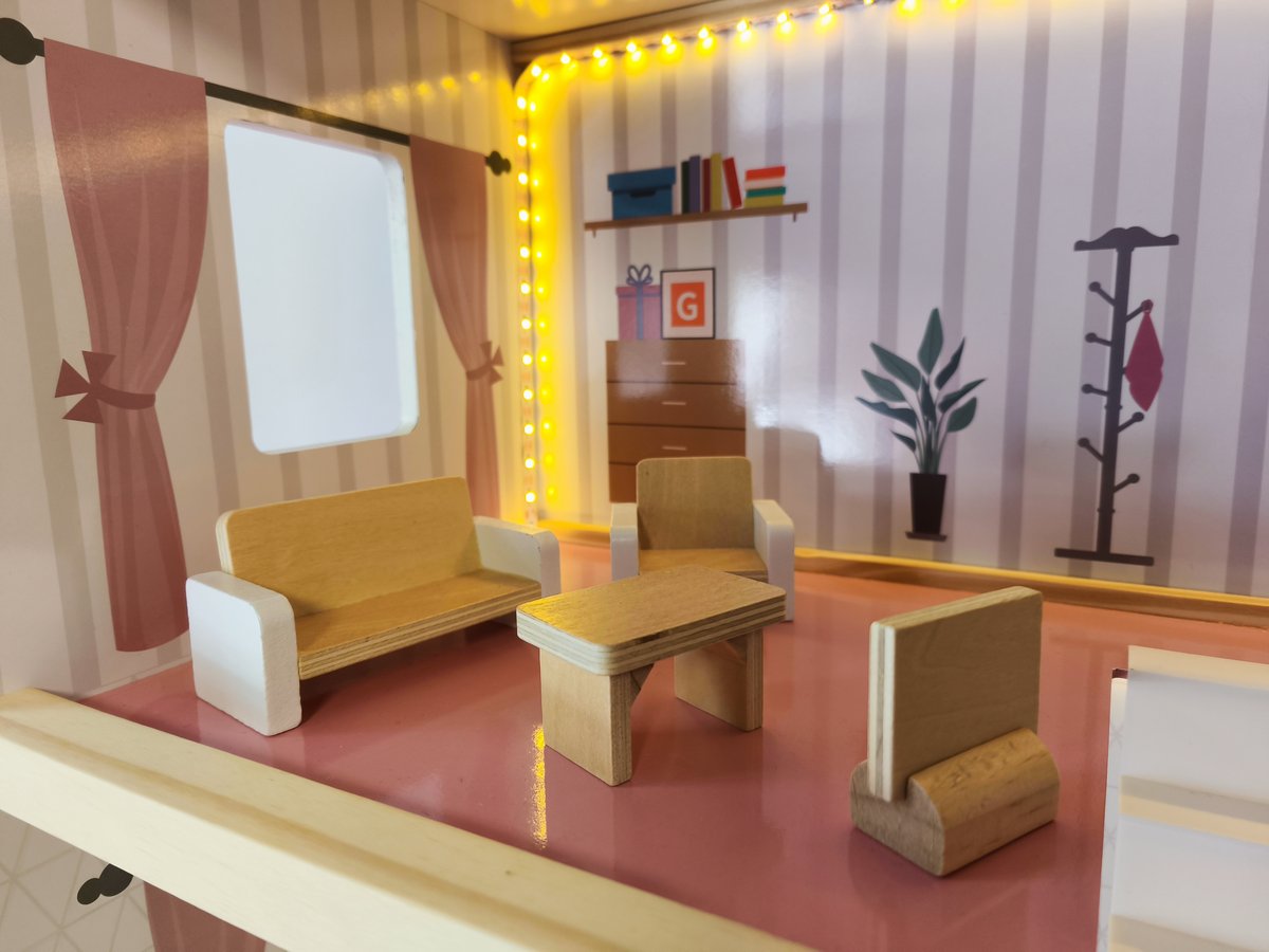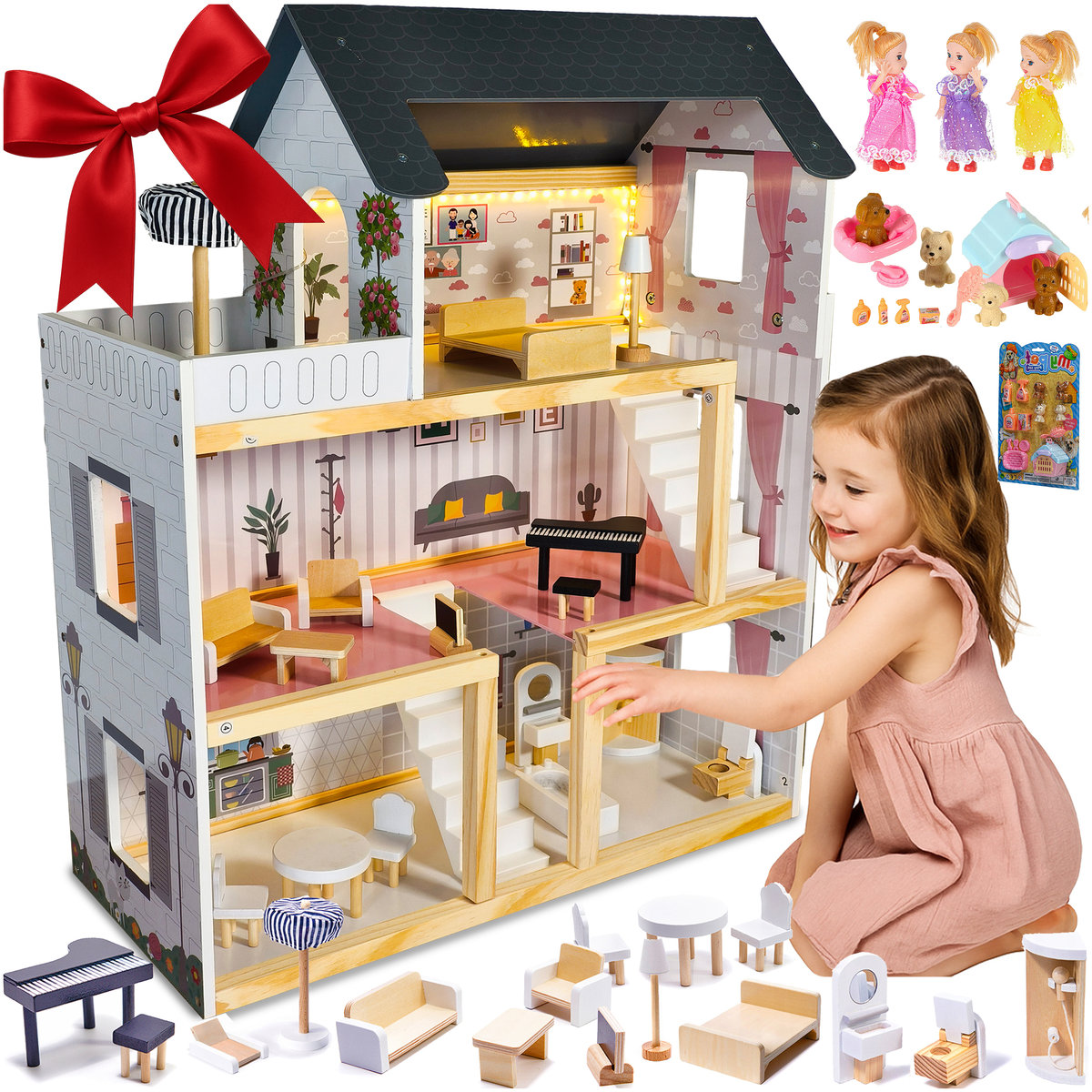 Przedstawiamy nowoczesny, piętrowy domek dla lalek z oświetleniem LED i pełnym zestawem mebelków. To nie tylko źródło niekończącej się zabawy, ale również piękna dekoracja do dziecięcego pokoju!