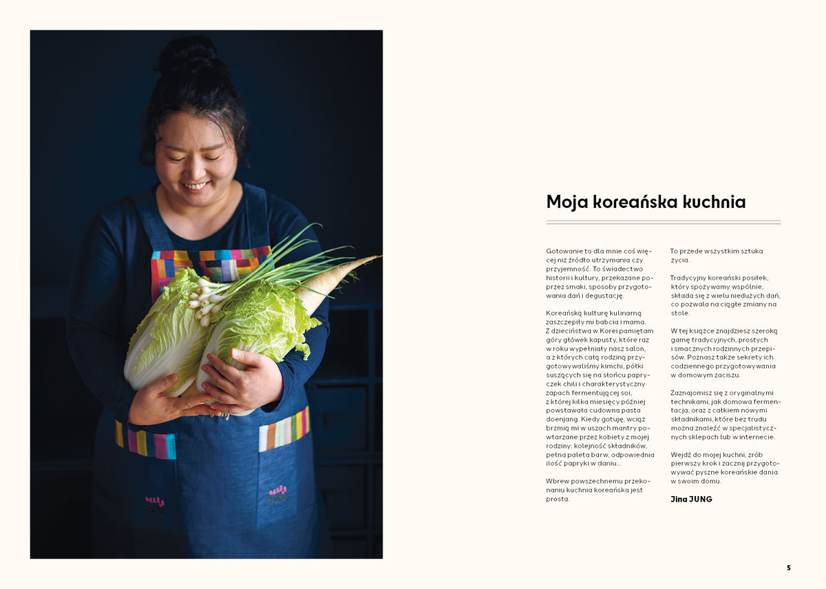 "Z dzieciństwa w Korei pamiętam góry główek kapusty, które raz w roku wypełniały nasz salon, a z których całą rodziną przygotowywaliśmy kimchi, półki suszących się na słońcu papryczek chili i charakterystyczny zapach fermentującej soi, z której kilka miesięcy później powstawała cudowna pasta doenjang. Kiedy gotuję, wciąż brzmią mi w uszach mantry powtarzane przez kobiety z mojej rodziny: kolejność składników, pełna paleta barw, odpowiednia ilość papryki w daniu..."