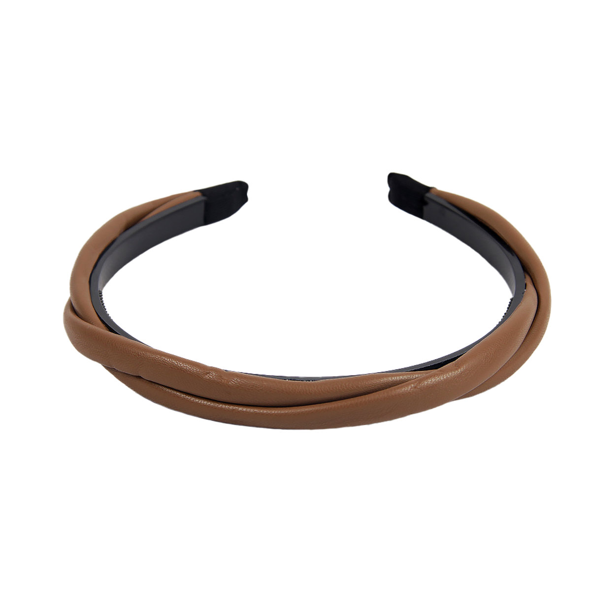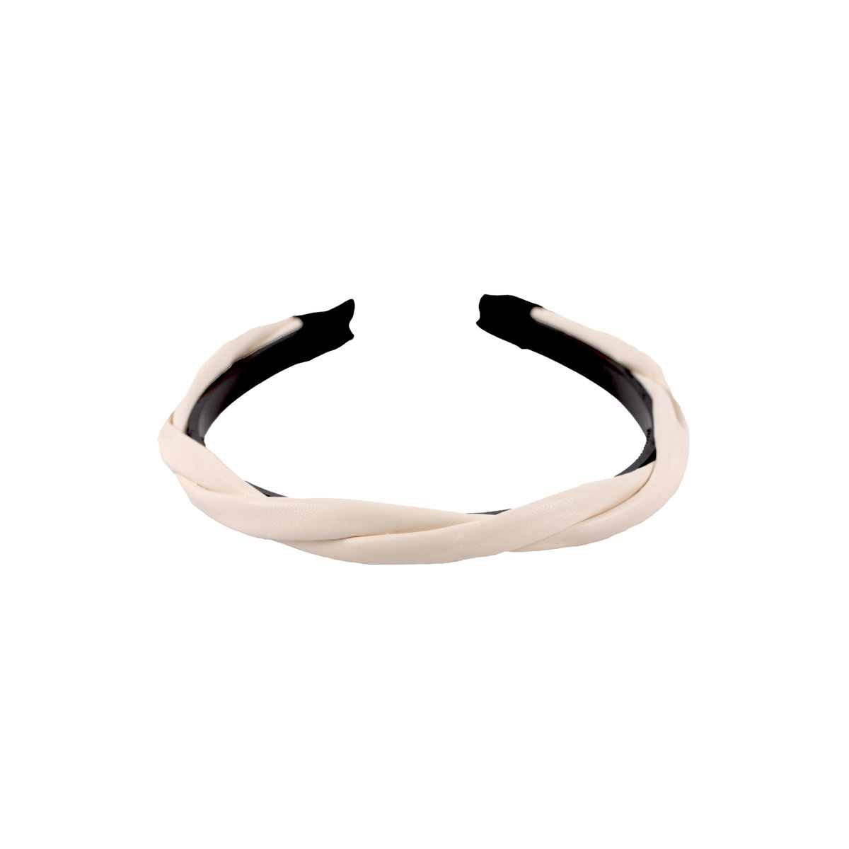 Opaska do włosów z ozdobnym splotem z imitacji skóry.