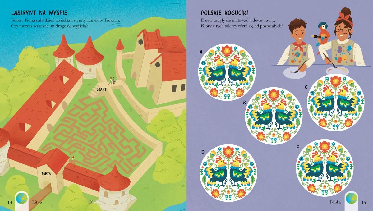 Fiona i Feliks dowiadują się, że ich dziadek był podróżnikiem i objechał świat w 80 dni. Teraz razem ze swoją papugą także wyruszają w podróż. Rozwiąż z nimi masę zadań (np. znajdź podobne, porównaj obrazki, wyszukaj na obrazku, labirynty, sudoku) i poznaj ciekawe fakty na temat rozmaitych atrakcji turystycznych.