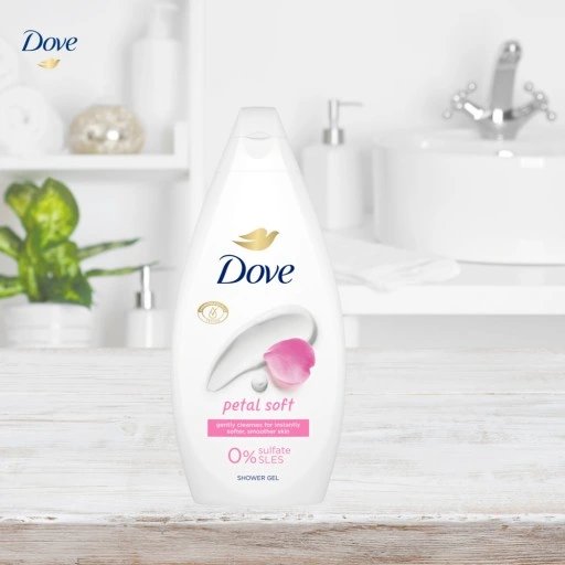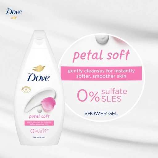 Delikatny żel pod prysznic Dove Petal Soft, o przyjemnym kwiatowym zapachu, łagodnie oczyszcza zapewniając bardziej miękką i gładszą skórę już po jednym prysznicu.