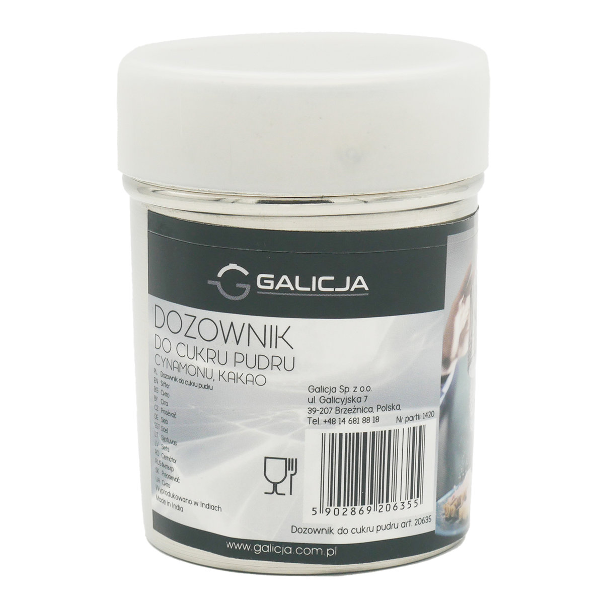 Dozownik z sitkiem i pokrywką, dozownik do cukru pudruCechy produktu:Kolor: srebrnyWysokość: 10cmŚrednica: 7cmMateriał: Tworzywo sztuczneLiczba sztuk w opakowaniu: 1