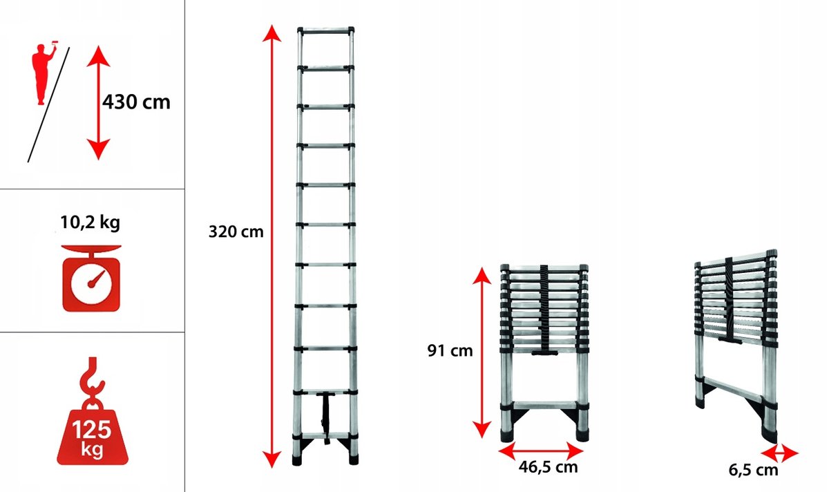 Drabina teleskopowa sprawdzi się w różnych pracach, dostosowując się do Twoich potrzeb. Oferuje: