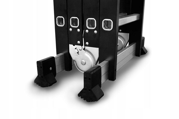 Nasza drabina wielofunkcyjna została zaprojektowana z myślą o maksymalnej wygodzie użytkowania. Wyposażona w niezawodny mechanizm blokady przegubów oraz samoblokujące się zawiasy, gwarantuje prostą i intuicyjną obsługę.