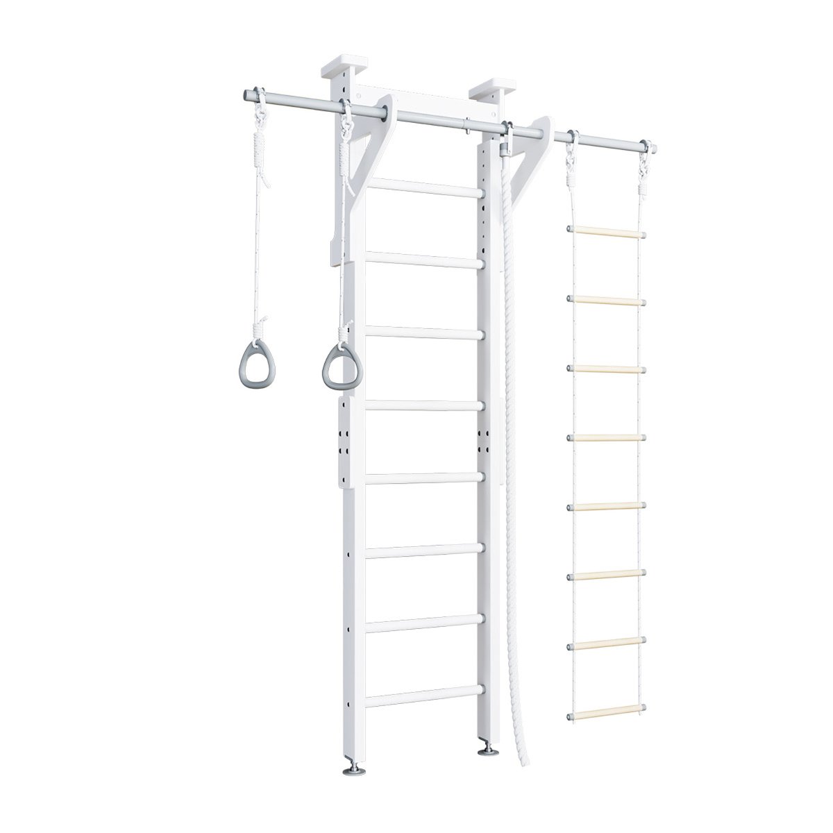 - w zestawie: drabinka ścienna, drążek poziomy, 2 uchwyty gimnastyczne, lina gimnastyczna, drabinka sznurkowa