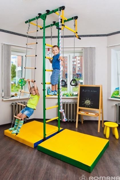 - wyposażenie: metalowa drabinka, drabinka linowa, kółka, drążek nieprzesuwny, trapez