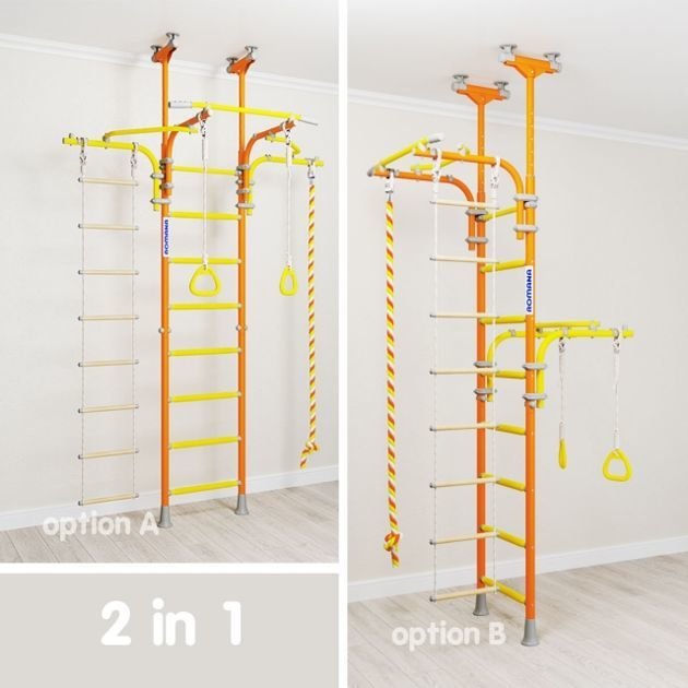 Zestaw ten wyposażono w drążek z możliwością regulacji wysokości oraz dodatkowe ramiona znajdujące się po obu stronach drabinki. Służą one do podwieszania dodatkowych elementów, takich jak lina gimnastyczna, obręcze gimnastyczne czy drabinki linowe. Szczebelki pokryto antypoślizgową powłoką Anti-Slip, która wyposażona jest wypustki mające na celu masaż receptorów na dłoniach i stopach dzieci.