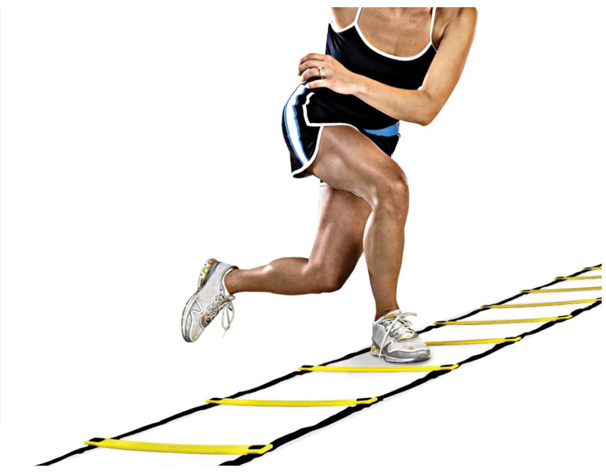 - Bieg przez drabinki ze sprintem 20m po wyjściu To zadanie łączy wcześniejsze ćwiczenie z natychmiastowym sprintem po wyjściu z drabinek. Wykonaj jedno z wcześniej opisanych ćwiczeń na drabince, po wyjściu natychmiast, biegnij sprintem przez 20m.