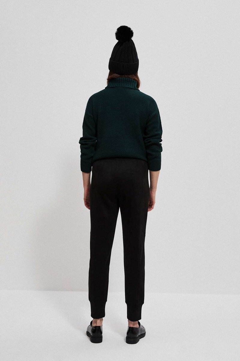 95%POLIESTER, 5%ELASTAN. Czarne spodnie dresowe. Na przedzie widoczne ozdobne szwy, nadające lekko elegancki charakter. W pasie sznurek regulujący szerokośc w pasie. Kieszenie zapinane na zamek. ...