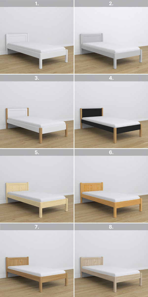 Drewniane łóżko pojedyncze dostępne jest również w wersji z szufladą do przechowywania lub z wzmocnioną szufladą przeznaczoną na dodatkowy materac. Występuje również wielu wariantach kolorystycznych.