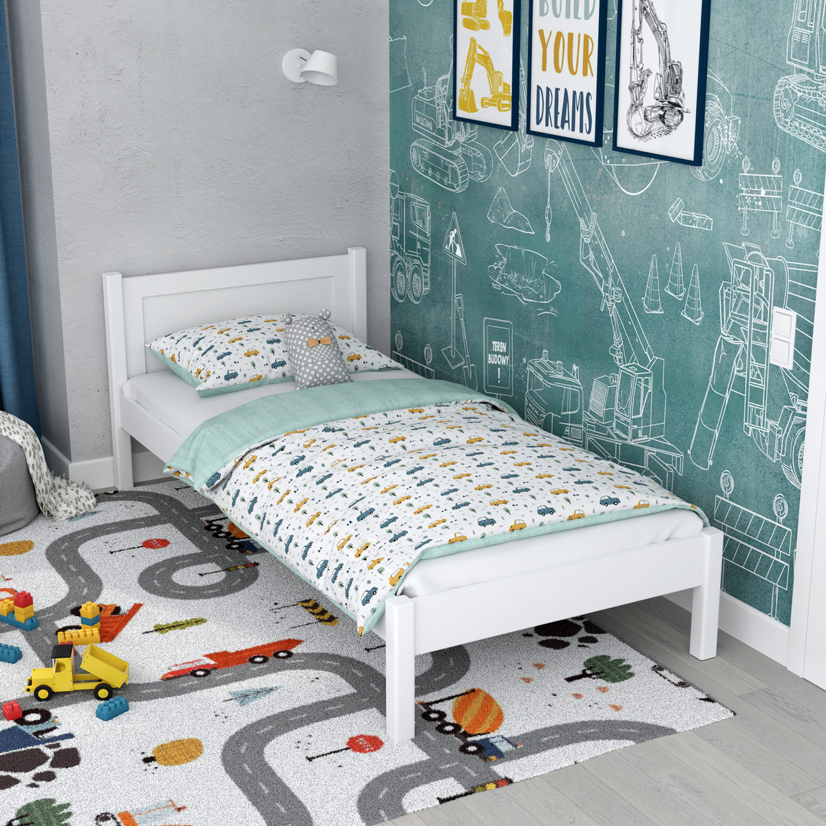 Drewniane łóżko pojedyncze dostępne jest również w wersji z szufladą do przechowywania lub z wzmocnioną szufladą przeznaczoną na dodatkowy materac. Występuje również wielu wariantach kolorystycznych.
