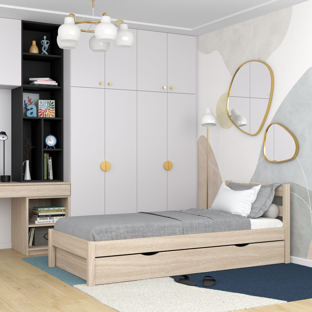 Drewniane łóżko N01 w kolorze bielonego dębu (dąb sonoma) wyposażone w praktyczną i pojemną szufladę, to nie tylko wyjątkowo wysokiej jakości mebel, lecz także dzieło rzemiosła, które gwarantuje nie ...