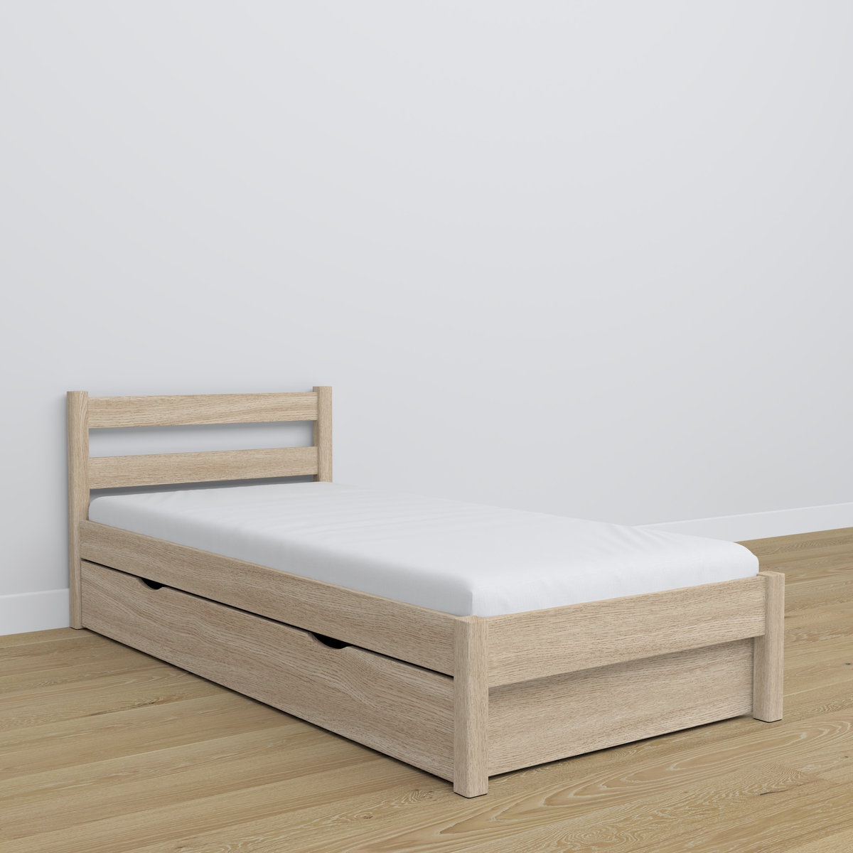 | Nazwa: | Drewniane łóżko pojedyncze z szufladą N01 dąb bielony 100x180 |