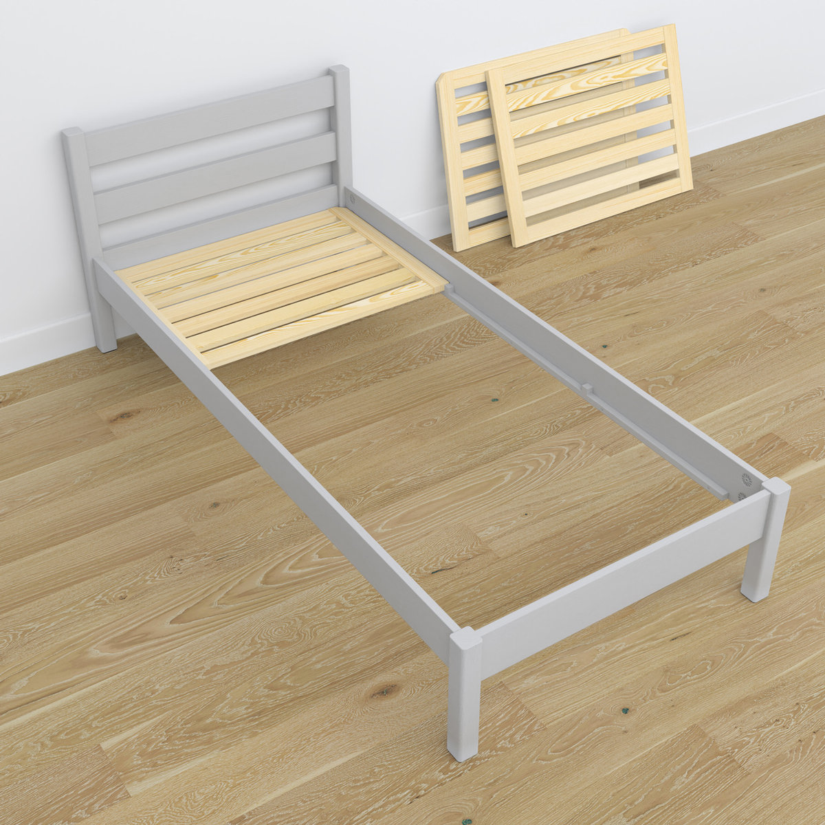 Łóżko jest sprzedawane w komplecie ze stelażem pod materac, przy czym materac nie jest częścią zestawu.