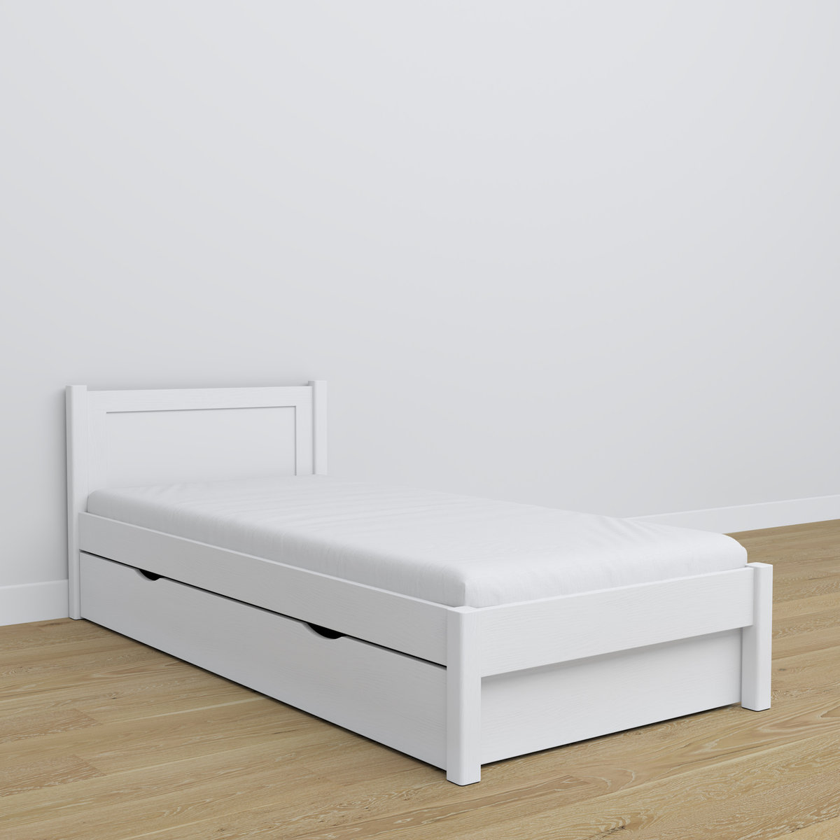 Drewniane łóżko pojedyncze dostępne jest w wersji z szufladą do przechowywania lub z wzmocnioną szufladą przeznaczoną na dodatkowy materac. Występuje również wielu wariantach kolorystycznych.