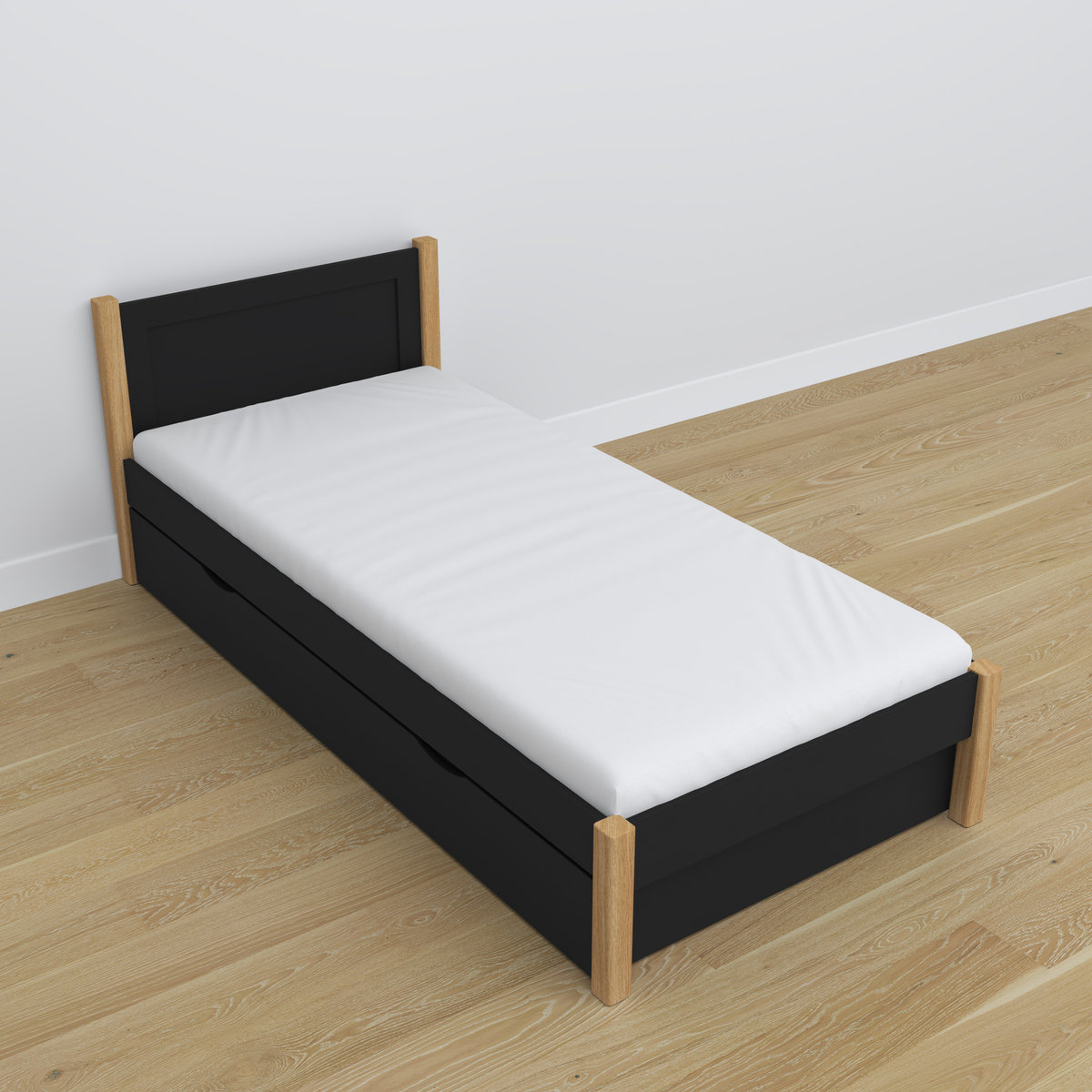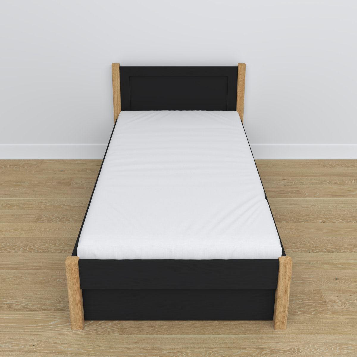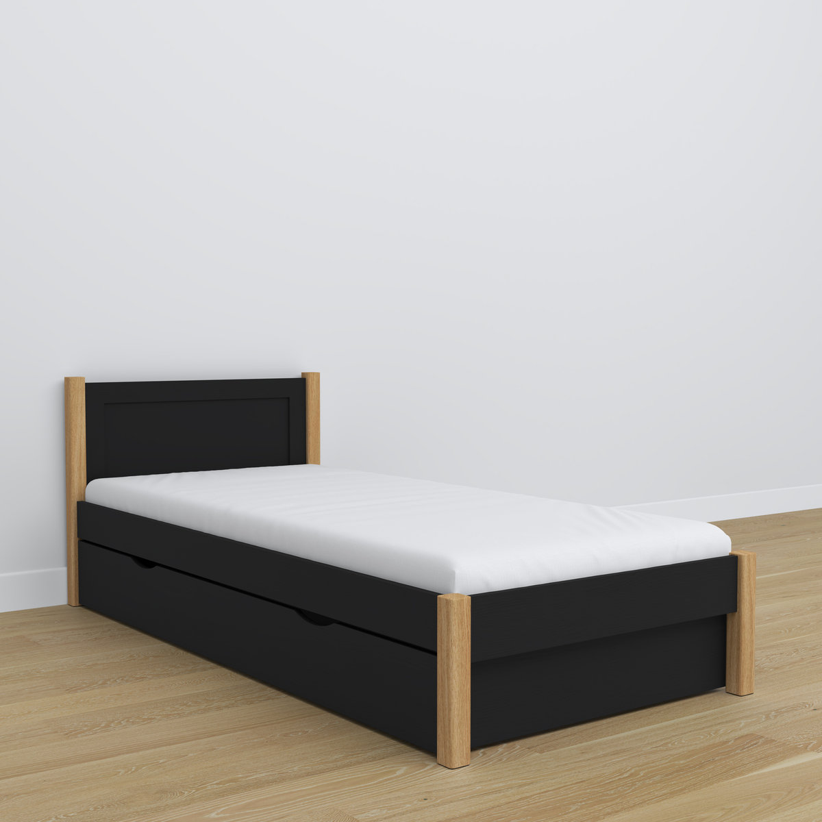 Drewniane łóżko pojedyncze dostępne jest w wersji z szufladą do przechowywania lub z wzmocnioną szufladą przeznaczoną na dodatkowy materac. Występuje również wielu wariantach kolorystycznych.