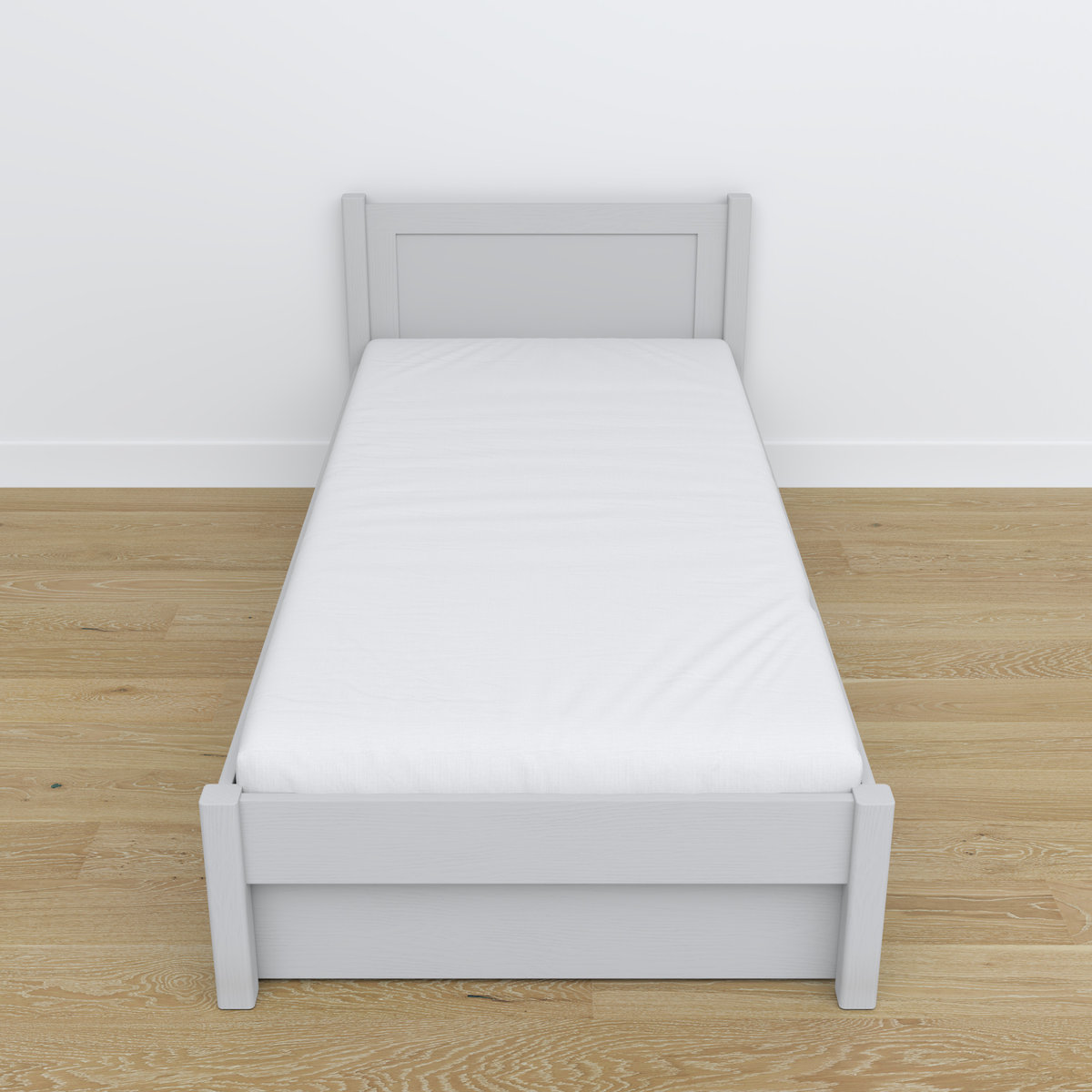 Drewniane łóżko pojedyncze dostępne jest w wersji z szufladą do przechowywania lub z wzmocnioną szufladą przeznaczoną na dodatkowy materac. Występuje również wielu wariantach kolorystycznych.