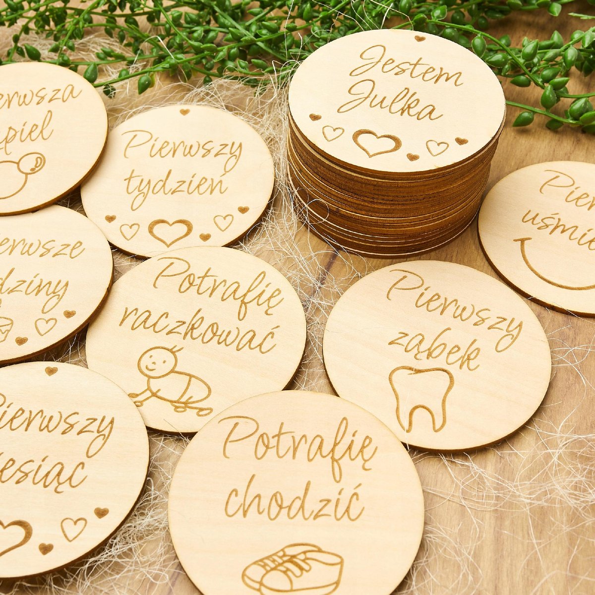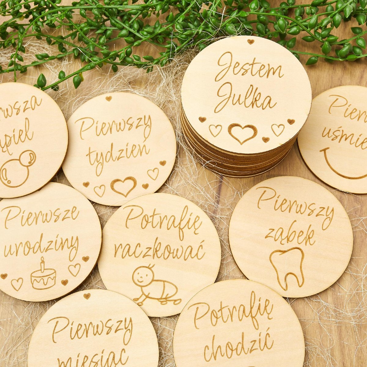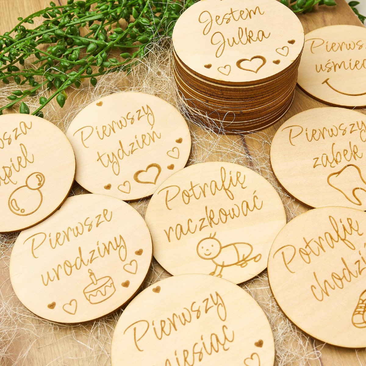 Drewniane tabliczki do zdjęć dokumentujących najważniejsze chwile w pierwszych miesiącach życia Twojego maluszka