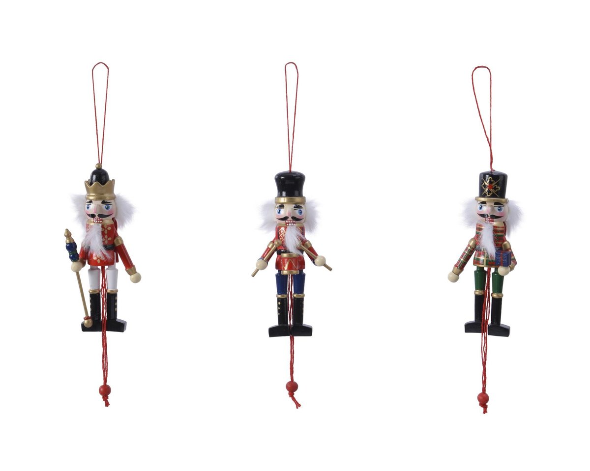 Zawieszka na choinkę wykonana z drewna w kultowym kształcie dziadka do orzechów. Modny wzór sprawi, że ozdoba świetnie dopełni wystój drzewka bożonarodzeniowego. Produkt w trzech wzorach.