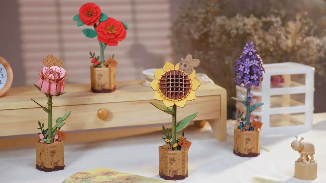 Udekoruj swoje życie drewnianym bukietem kwiatów Robotime-Rowood. Ten wykwintny zestaw zawiera wiele drewnianych kwiatów i roślin, w tym słonecznik, lilia, czerwoną kamelię, różową różę i eukaliptus ...