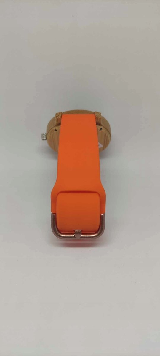 Bobo Bird Silikon to stylowy, damski zegarek. Jasna, drewniana koperta idealnie współgra z pomarańczowym silikonowym paskiem.. Na innych aukcjach dostępne są kolory pasków: