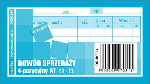 | Nazwa: | Druk Dowód Sprzedaży Paragon 4 poz A7 1+1 |