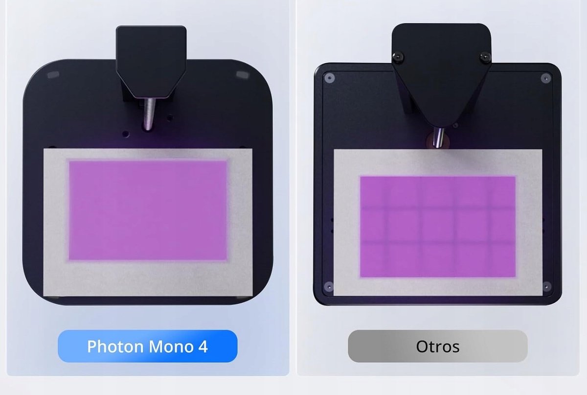 - Źródło światła Matrix LighTurbo: Drukarka żywiczna Photon Mono 4 wykorzystuje matrycowe źródło światła Anycubic LighTurbo, które zapewnia stabilne, zrównoważone i równomierne oświetlenie, eliminując linie warstw i rasteryzację, tworząc modele o wyjątkowo gładkiej powierzchni i maksymalnych szczegółach drukowania. Czasy ekspozycji pojedynczej warstwy zostały skrócone do zaledwie 1,5 s, aby poprawić wydajność drukowania