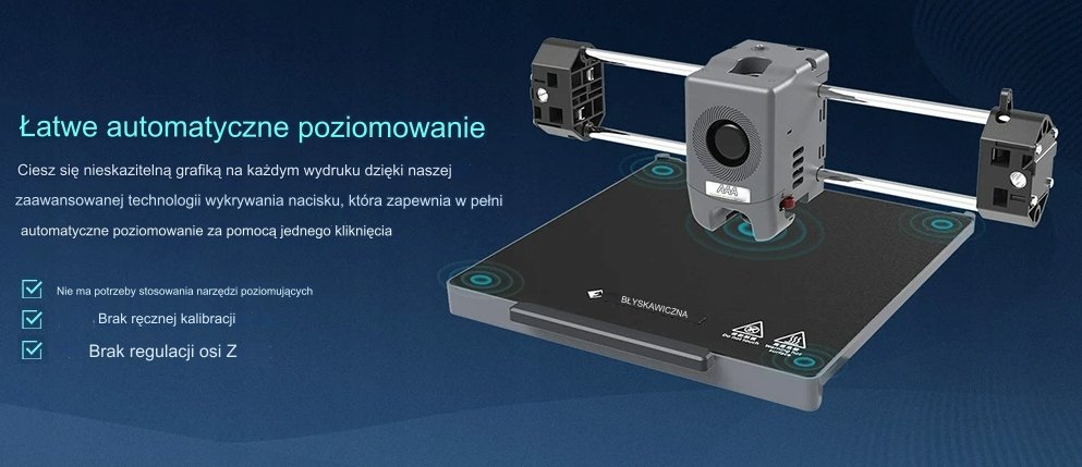 Innowacyjny system automatycznego poziomowania w Adventurer 5M gwarantuje idealnie wykonaną pierwszą warstwę druku bez dodatkowego wysiłku.
