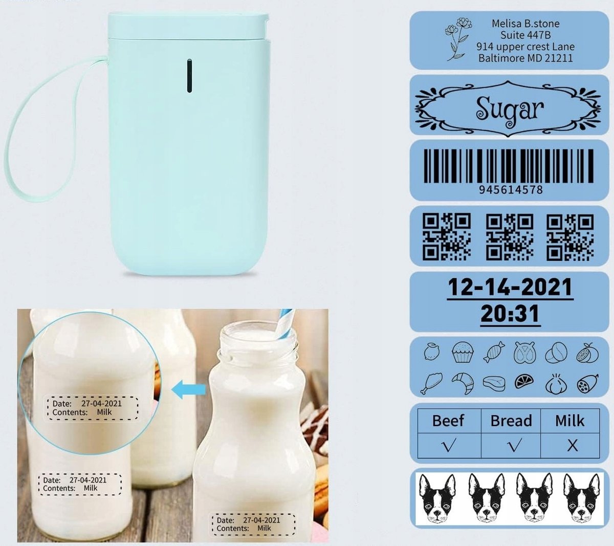 ✅ Świetnie sprawdza się do druku etykiet na: słoiki, przyprawy kuchenne, daty ważności produktów, opakowania leków, dokumenty, zeszyty szkolne, jako etykiety cenowe i wiele innych.