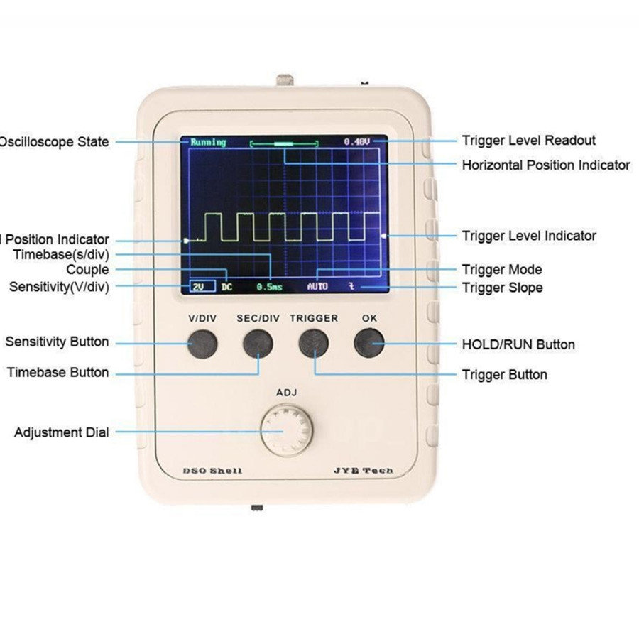 DSO150-SHELL to kompletny i uruchomiony mini oscyloskop cyfrowy.