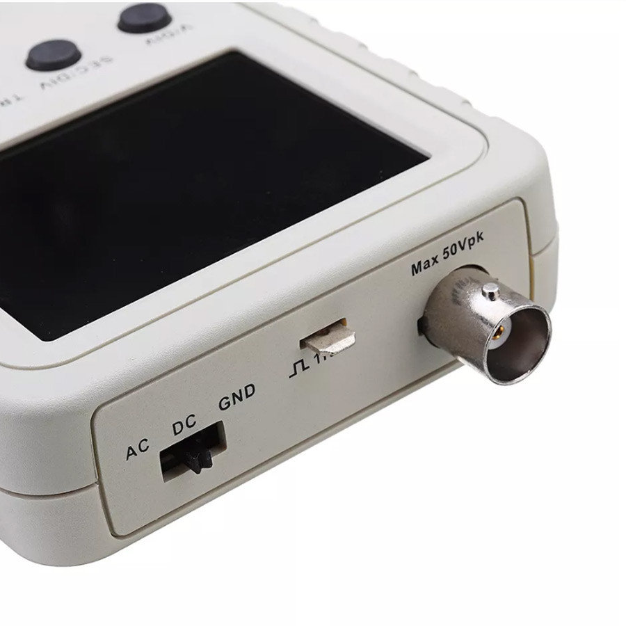 Ten miniaturowy 1 kanałowy oscyloskop cyfrowy wyposażono w kolorowy wyświetlacz TFT 2,4cala o rozdzielczości 320x240.