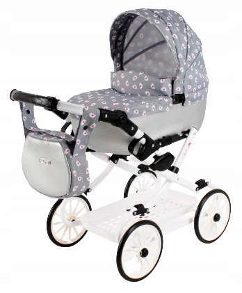 | Nazwa: | Duży wózek dla lalek z torebką i koszykiem Viki Vi-08 SREBRNY Z PTASZKAMI |