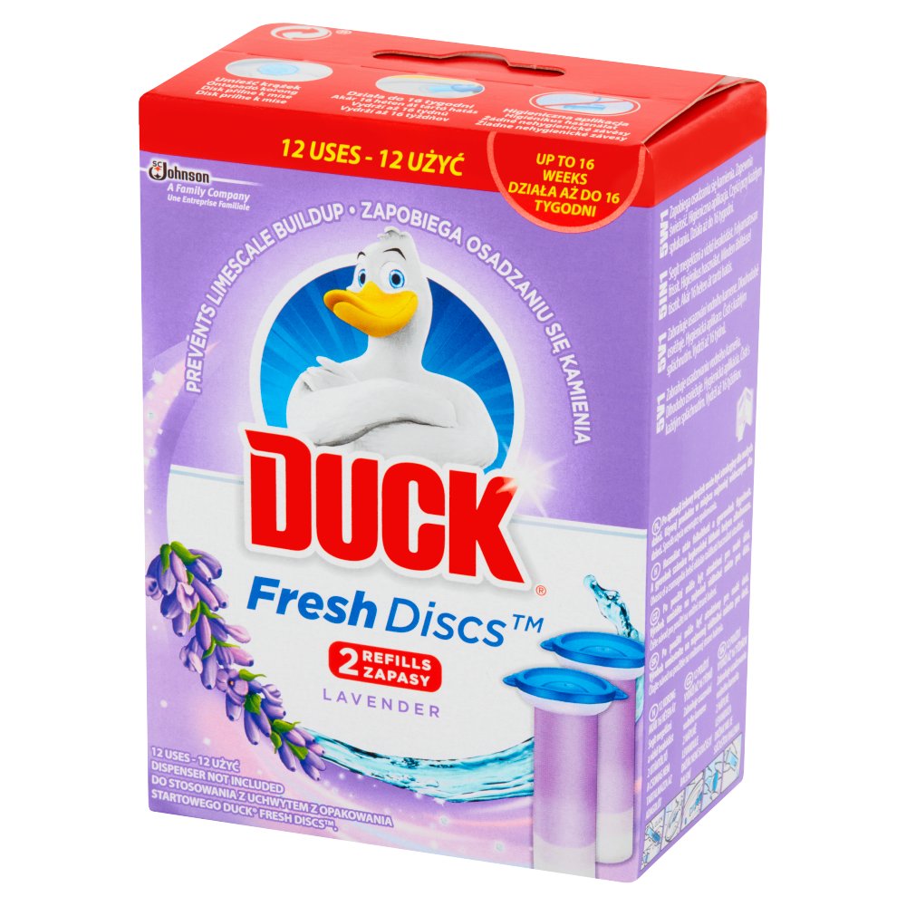 Duck lavender 2 zapasy krążka żelowego do toalety- działa aż do 16 tygodni- zapobiega osadzaniu się kamienia- używać produktu w miejscu najmniej widocznym dla dzieci- podwójny zapas krążka żelowego ...